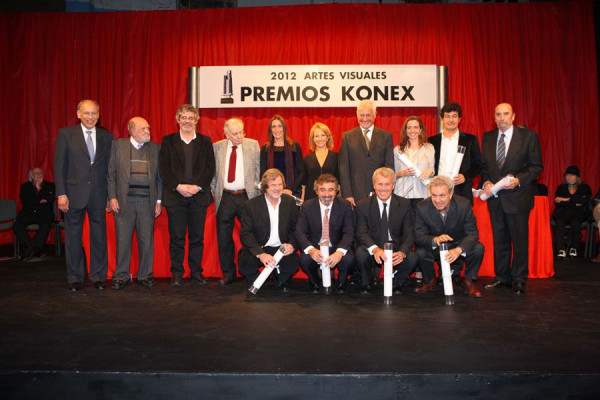 De izquierda a derecha, de pie: Luis Ovsejevich (Presidente Fundación Konex), Luis Felipe Noé (Presidente Gran Jurado), Berto González Montaner (Jurado), Juan Manuel Borthagaray, por Estudio Bertolino - Barrado: Mónica Bertolino, por Estudio Bórmida & Yanzón: Eliana Bórmida y Mario Yanzón, por Estudio Caballero - Fernández: Maite Fernández y Gerardo Caballero , por Estudio Urgell - Penedo - Urgell: José Urgell. Abajo, por Estudio Bertolino - Barrado: Carlos Barrado, por Estudio Urgell - Penedo - Urgell: Juan Urgell, por Mario Roberto Álvarez (Post-Mortem): su hijo Mario Roberto, por Estudio Urgell - Penedo - Urgell: Augusto Penedo.